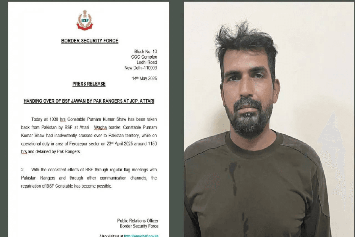 बीएसएफ के इस जवान का पूरा नाम पूर्णम कुमार शॉ है उम्र 40 वर्ष, पत्नी का नाम रजनी शॉ है जवान मूलरूप से रिषड़ा, हुगली जिला, पश्चिम बंगाल के निवासी हैं, जवान सीमा सुरक्षा बल (BSF), 24वीं बटालियन में कार्यरत है. जवान की वर्तमान नियुक्ति फिरोजपुर सेक्टर, पंजाब में है. जवान अपनी ड्यूटी के दौरान गलती से अंतरराष्ट्रीय सीमा पार कर पाकिस्तान की सीमा में प्रवेश कर गए थे. उन्हें पाकिस्तान रेंजर्स ने हिरासत में ले लिया था. इसके बाद भारत सरकार ने उच्च स्तर पर कूटनीतिक प्रयास किए. प्रधानमंत्री नरेंद्र मोदी के निर्देश पर ‘ऑपरेशन सिंदूर’ के तहत लगातार बातचीत और प्रयास हुए. अंततः 14 मई 2025 को पाकिस्तान ने जवान को अटारी-वाघा बॉर्डर पर भारत को सौंप दिया.