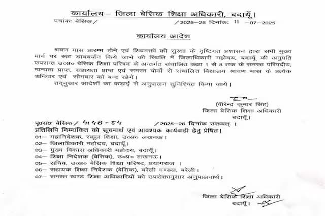 बदायूं में भी प्रशासन ने श्रावण मास के दौरान हर शनिवार और सोमवार को कक्षा 1 से 8 तक के प्राथमिक विद्यालयों में अवकाश रखने का निर्णय लिया है. यह फैसला कांवड़ यात्रा की भीड़ और सुरक्षा व्यवस्था को ध्यान में रखते हुए लिया गया है.