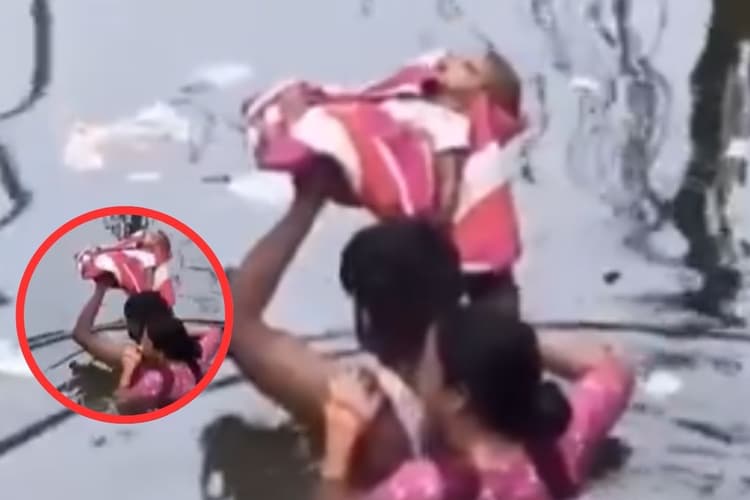 प्रयागराज के छोटा बघाड़ा इलाके से एक भावुक कर देने वाली घटना का वीडियो सोशल मीडिया पर वायरल हो रहा है. वीडियो में एक परिवार को नवजात शिशु और उसकी मां को बाढ़ग्रस्त इलाके से बचाते हुए देखा जा सकता है. उस समय कोई सरकारी मदद नहीं थी. पिता अपने बच्चे को कंधे के ऊपर हाथों में उठाए हुए दिखता है, जबकि एक अन्य सदस्य मां को पीठ पर लेकर कमर तक भरे पानी में धीरे-धीरे सुरक्षित स्थान की ओर बढ़ता है. आसपास खड़े लोग केवल दुआ करते दिखते हैं, “गंगा मैया, रहम करो!”