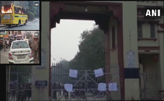 BHU में छात्र नेता की गिरफ्तारी के बाद उपद्रव, स्कूल बस को लगायी आग, माहौल तनावपूर्ण