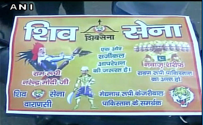 Seen in Varanasi (UP), posters featuring PM Narendra Modi as Lord Rama, Pak PM as Ravana. pic.twitter.com/9fnkn72I1b