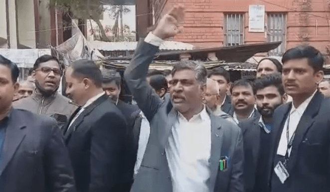 वाराणसी शहर उत्तरी विधानसभा से बीजेपी उम्मीदवार रवींद्र जायसवाल आज वाराणसी कचहरी में चुनाव प्रचार करने पहुंचे. जहां कचहरी पहुंचने पर रवींद्र जायसवाल का अधिवक्ताओं ने जमकर विरोध किया और नारेबाजी की. इस दौरान आक्रोशित अधिवक्ताओं ने रविंद्र जायसवाल वापस जाओ भूमाफिया वापस जाओ के नारे भी लगाये.