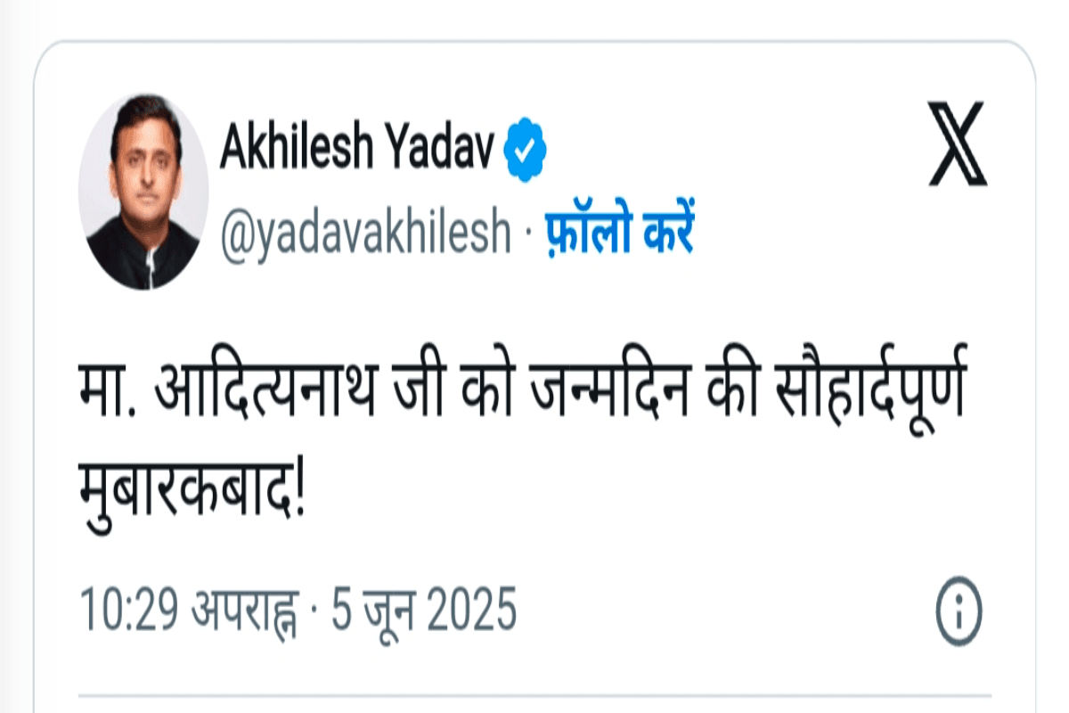 रात 10:28 बजे अखिलेश यादव ने ‘X’ (पहले ट्विटर) पर योगी आदित्यनाथ को जन्मदिन की बधाई दी. उन्होंने लिखा:-