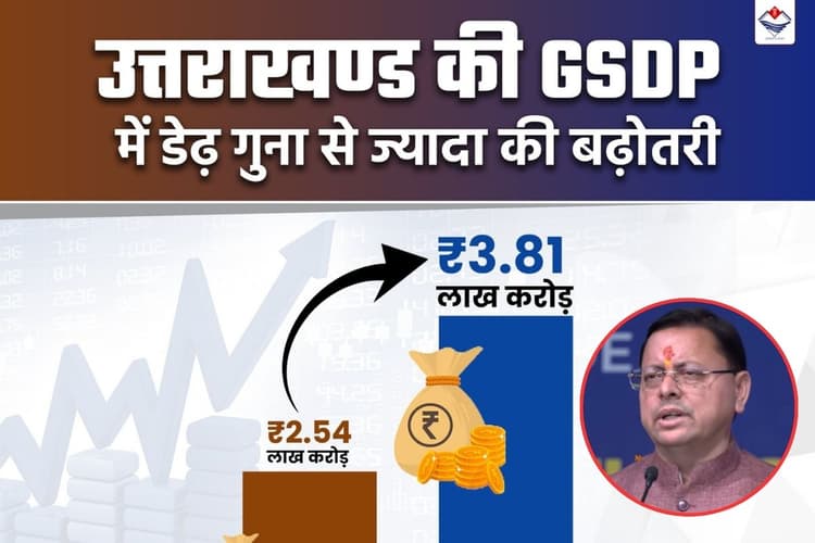 Uttarakhand : 2024-25 में उत्तराखंड का सकल घरेलू उत्पाद (जीएसडीपी) ₹ 3,81,889 करोड़ का रहा. 2021-22 के मुकाबले जीएसडीपी में डेढ़ गुना से ज्यादा का उछाल आया. राज्य में वर्ष एमएसएमई की कुल संख्या बढ़कर 79394 हुई.