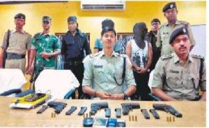 दिनहाटा : दिनहाटा थाना पुलिस ने आग्नेयास्त्र के साथ दो लोगों को गिरफ्तार किया है. कूचबिहार स्थित कार्यालय में आयोजित पत्रकार सम्मेलन में जिला पुलिस अधीक्षक डॉ. भोलानाथ पांडे ने सोमवार को इसकी जानकारी दी. पुलिस अधीक्षक ने बताया कि गिरफ्तार दो युवकों के नाम हितेन राय व छोटन बर्मन है. दोनों दिनहाटा के आलोकझाड़ी गांव के निवासी है. उनलोगों के पास से पुलिस ने चार 7.65 रिवाल्वर, 7 मैगजीन, 11 राउंड कारतूस, एक स्मार्ट फोन, 3 फोन व एक डोंगल बरामद किया है.