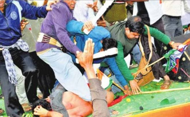 तभी मंच पर मौजूद अन्य लोगों ने उस युवक को घेर लिया और पीटने लगे. देखते ही देखते अन्य लोग भी मंच पर चढ़ गये और उसे बेरहमी से पीटने लगे. नाराज तृणमूल नेताओं व कार्यकर्ताओं ने पत्रकारों को भी पीटना शुरू कर दिया. कोलकाता टीवी के काजल बागची को बुरी तरह पीटा गया. उसकी हालत गंभीर बतायी जा रही है. वर्तमान अखबार के फोटोग्राफर चंद्र भानु बिजोली को भी पीटा गया. एबीपी आनंद के बीटन चक्रवर्ती को भी घेर लिया गया. सभी पत्रकार बचने के लिए वहां से कुछ ही कदम की दूरी पर थाने में पहुंचे लेकिन भीड़ वहां भी पहुंच गयी और पत्थर बरसाने लगी. थाने में भी तोड़फोड़ की गयी. थप्पड़ मारने वाले युवक को बचाने पहुंची पुलिस को भी पीटा गया. लोगों से बचने के लिए युवक मंच के नीचे चला गया वहां से उसे निकाल कर फिर पिटाई की गयी. मरणासन्न हालत में पुलिस ने पहले उसे चंडीपुर स्वास्थ्य केंद्र पहुंचाया और वहां से फिर तमलुक जिला अस्पताल में भरती कराया.
