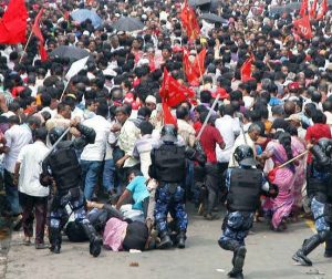 बैरिकेड तोड़कर नवान्न के लिए जाते समय पुलिस से उलझे माकपा समर्थक