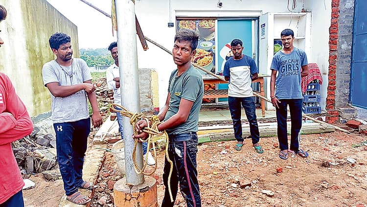 दुर्गापुर. मंगलवार को शहर के भगत सिंह मोड़ इलाके में एक दुकान के कैशबॉक्स से रुपये निकाल कर भागते युवक को स्थानीय लोगों ने पकड़ लिया और पास के बिजली के खंभे से बांध दिया. खबर सुन कर आसपास से लोगों की भीड़ जुट गयी. सूचना पाकर न्यू टाउनशिप थाने की पुलिस घटनास्थल पर पहुंची और लोगों के कब्जे से युवक को छुड़ा कर थाने ले गयी. दुकानदार ने बताया कि बीते कई दिनों से इलाके में चोरी की घटनाएं हो रही हैं. मंगलवार को अपनी दुकान खुली छोड़ कर कुछ देर को पास की दुकान में गया था. तभी मौका देख कर आरोपी युवक दुकान में घुसा और कैश बॉक्स में रखें हजारों रुपये लेकर भागने लगा. उस पर नजर पड़ते ही दुकानदार ने शोर मचाते हुए आरोपी को खदेड़ कर पकड़ लिया और पास ही बिजली के खंभे से बांध दिया. फिर पुलिस को सूचना दी गयी. खबर पाकर पुलिस पहुंची और आरोपी को पकड़ थाने ले गयी.