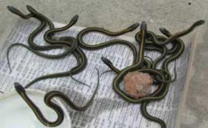 चीख सुनकर घर के सदस्य दौड़कर कमरे में आये, देखा तो खाट के नीचे 19 सांप के बच्चे रेंग रहे हैं. घरवालों ने पड़ोसियों की मदद से वन विभाग को सूचित किया. वन विभाग के कर्मियों ने सपोलो को बरामद कर घने जंगल में ले जाकर छोड़ दिया. सुमित ने बताया कि पत्नी जब बच्चे को दूध पिलाने के लिए खाट पर बैठी थी, तभी साईं साईं की आवाज सुनकर उसने इधर-उधर नजर दौड़ाई. लेकिन कुछ नजर नहीं आने के बाद भी आवाज सुनकर खाट के नीचे झुक कर देखा तो चीख उठी. उसकी चीख सुनकर हम सब दौड़े-दौड़े कमरे में पहुंचे.