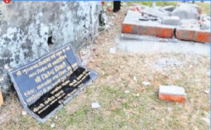 रानीगंज : रामबागान में श्री गुरुनानक विद्यालय के लिए भवन निर्माण के लिए बीते 14 दिसंबर को मेयर जितेन्द्र तिवारी द्वारा लगाये गये शिलापट्ट को शनिवार की रात असामाजिक तत्वों ने तोड़ दिया. तोड़े जाने के पश्चात फिर उसे उसी स्थान में जमीन पर जोड़ कर रखा गया.