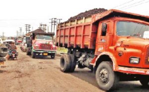 ट्रांसपोर्टिंग ठप कर रोड की मरम्मत के लिए विरोध प्रदर्शन