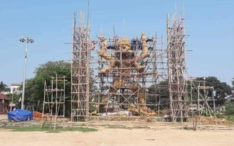 पश्चिम बंगाल में कालीपूजा (Kali puja ) को लेकर तैयारियां शुरु हो गई है. बीरभूम जिले में विशाल काली प्रतिमा के निर्माण को लेकर चर्चा जोरों पर है. बीरभूम जिले के पुरंदरपुर की बांधव समिति जिले में सबसे बड़ी काली मूर्ति बनाने के लिए प्रसिद्ध है. लेकिन पिछले दो साल में कोरोना संक्रमण के चलते बड़ी-बड़ी मूर्तियों का निर्माण बंद हो गया था. लेकिन इस बार काली पूजा में काली प्रतिमा की ऊंचाई लगभग 50 फीट होगी. ऐसा माना जा रहा है कि यह काली प्रतिमा लोगों के आकर्षण का केन्द्र बनेगी.