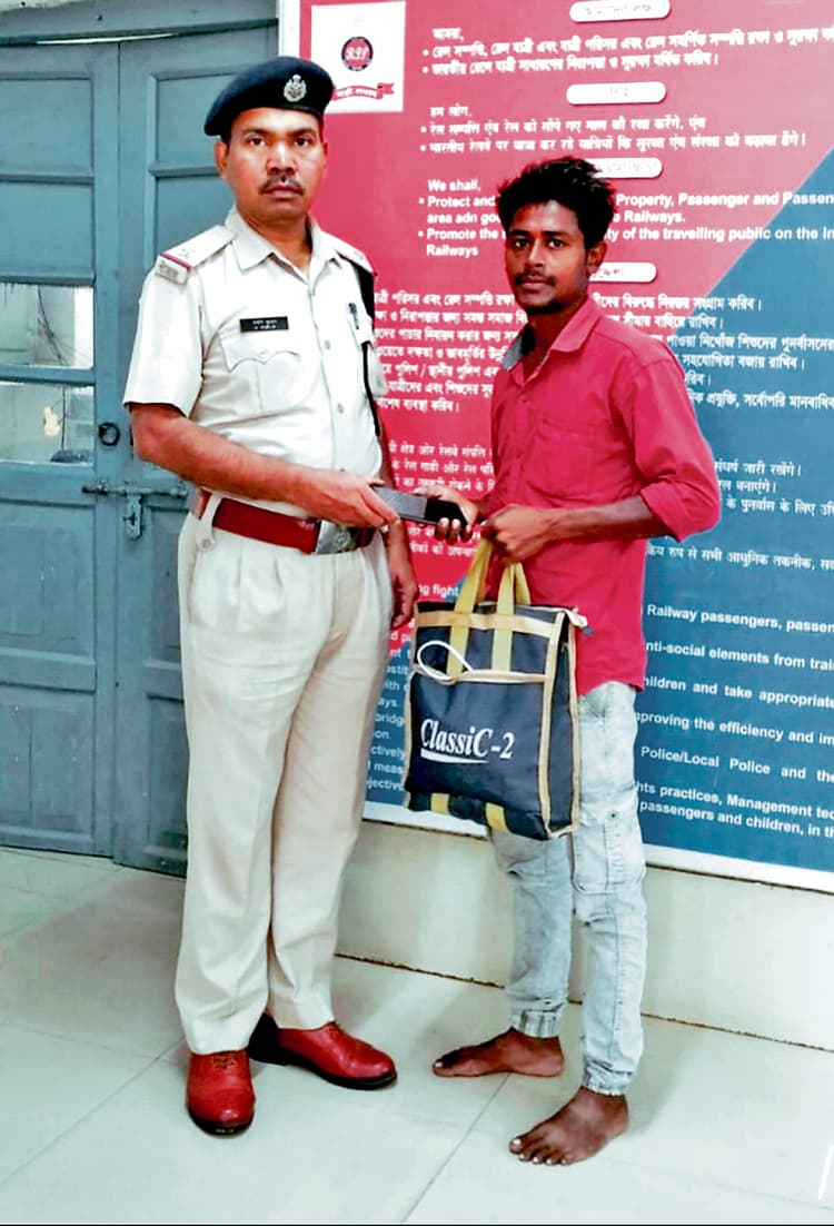आरपीएफ पोस्ट बांकुड़ा द्वारा मंगलवार को ””ऑपरेशन अमानत”” के तहत एक यात्री का छूटा हुआ बैग और मोबाइल लौटाया गया. जानकारी के अनुसार, मंगलवार की सुबह आरपीएफ पोस्ट बांकुड़ा के एएसआइ मनीष कुमार, कांस्टेबल यूके पांडा और लेडी कॉन्स्टेबल के तेजा प्लेटफॉर्म संख्या 2 की नियमित जांच कर रहे थे. इसी दौरान उन्होंने नये फुट ओवर ब्रिज के पास एक बेंच पर नीले रंग का बैग और एक मोबाइल पैक लावारिस अवस्था में पड़ा देखा. मौके पर मौजूद यात्रियों से पूछताछ करने के बावजूद कोई उसका दावेदार सामने नहीं आया. इसके बाद पीए सिस्टम के माध्यम से बैग के बारे में कई बार घोषणा की गई, लेकिन कोई प्रतिक्रिया नहीं मिली.कई प्रयासों के बाद मालिक तक पहुंची सूचना