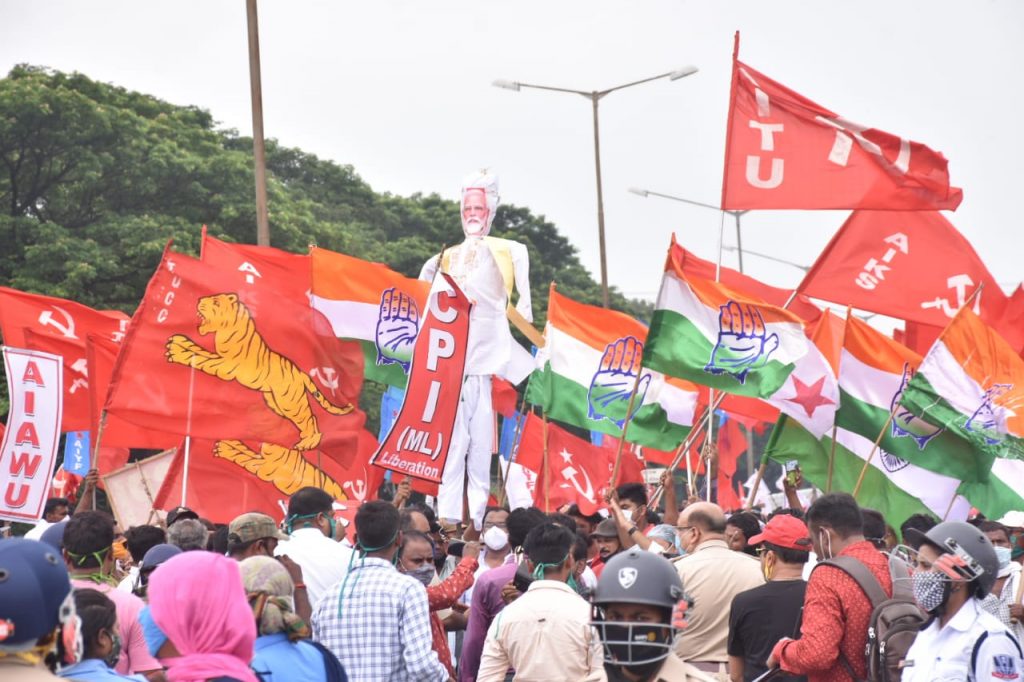 कृषि बिल के विरोध में आंदोलन के जरिये वाममोर्चा और कांग्रेस ने काजोड़ा में किया शक्ति प्रदर्शन