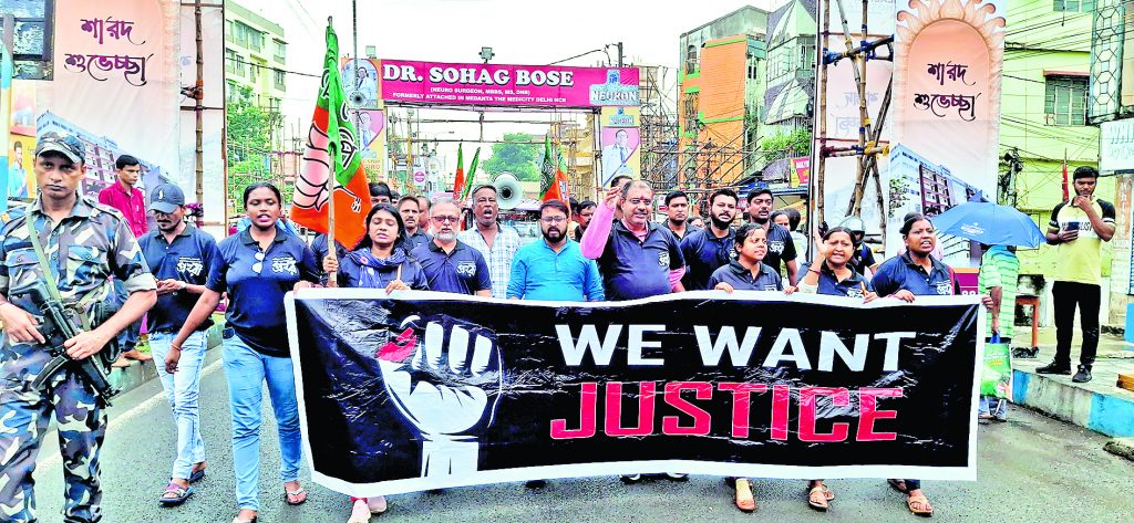 कोलकाता के आरजी कर अस्पताल की घटना के बाद दक्षिण 24 परगना के जयनगर कुलतली में बच्ची (10 वर्षीय) से दरिंदगी के बाद हत्या की घटना हुई. इसके खिलाफ भाजपा ने ‘बंगाल को अपनी बेटी के लिए न्याय चाहिए’ विषय पर राज्यव्यापी कार्यसूची के तहत आसनसोल में भी विरोध रैली निकाली. भाजपा प्रदेश कमेटी के नेता कृष्णेंदु मुखर्जी के नेतृत्व में रबींद्र नगर स्थित पार्टी कार्यालय से रैली निकली, जो भगत सिंह मोड़ से होकर वापस पार्टी कार्यालय में आकर समाप्त हो गयी.मौके पर कृष्णेंदु मुखर्जी ने कहा कि पश्चिम बंगाल के जयनगर कुलतली की नाबालिग बच्ची की हैवानियत के बाद हत्या कर दी गयी. इससे पता चलता है कि राज्य में अपराधियों के हौसले कितने बुलंद हैं. राज्य में महिलाओं व बच्चियों की सुरक्षा राम भरोसे हैं.