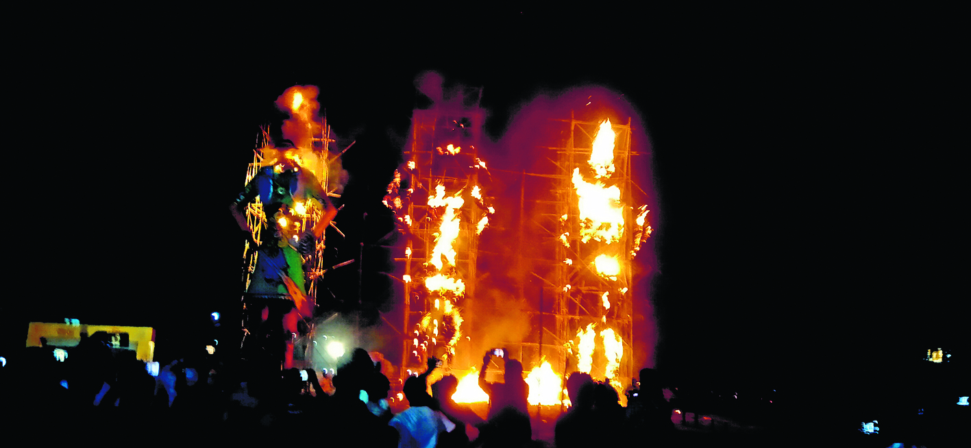 दुर्गापुर शहर के राजीव गांधी स्मारक मैदान ( चित्रालय मैदान) में हर वर्ष की भांति इस बार भी अखिल भारतीय सांस्कृतिक परिषद की ओर से 55वें वार्षिक कार्यक्रम, दशहरे का आयोजन किया गया. इस दौरान रामलीला, रावण ,कुंभकर्ण, मेघनाद के पुतलों का दहन में साथ रंगारंग आतिशबाजी की गयी. कार्यक्रम में मुख्य अतिथि के तौर पर इस्को बर्नपुर तथा दुर्गापुर इस्पात संयंत्र के निदेशक प्रभारी बृजेंद्र प्रताप सिंह के साथ दुर्गापुर इस्पात संयंत्र के कार्यपालक निदेशक संकाय दीप्तेंदु घोष, चिकित्सा व स्वास्थ्य सेवा के निदेशक डॉ सौविक राय सहित कई अन्य अतिथि सपरिवार उपस्थित थे. परिषद के अध्यक्ष संजीव कुमार सिंह, कमला कांत झा महेंद्र राय ने मुख्य अतिथि के साथ अन्य अतिथियों का स्वागत किया. मुख्य अतिथि द्वारा डंगाल अखाड़ा, मेन गेट अखाड़ा, चासीपाड़ा अखाड़ा, कादारोड अखाड़ा, बीजूपाड़ा अखाड़ा, उत्तर पल्ली अखाड़ा ऋषि अरविंद अखाड़ा, रांची अखाड़ा, सेकेंडरी अखाड़ा, ओल्ड कोर्ट अखाड़ा, ऋषि अरविंद अखाड़ा, झंडावाद अखाड़ा को महानवमी के दिन शोभायात्रा में उत्कृष्ट प्रदर्शन पर पुरस्कृत किया. परिषद के अखाड़ा प्रमुख धर्मेंद्र यादव को निदेशक प्रभारी ने विशेष रूप से सम्मानित किया. रावण, कुंभकरण, मेघनाद के पुतले को बनाने वाले परिषद के युवा कलाकारों राकेश कुमार वर्मा,शुभम सिंह, शुभजीत मोदक और प्रीति दत्त को भी पुरस्कृत किया गया. निदेशक प्रभारी ने अपने संबोधन में इस तरह के कार्यों के लिए दुर्गापुर इस्पात संयंत्र द्वारा हरवक्त सहयोग का आश्वासन दिया. उन्होंने कहा कि असत्य पर स्तय की विजय का प्रतीक है दशहरा. बलराम चौधरी, डॉक्टर जितेंद्र नाथ मिश्रा, राजू सिंह, मीनाक्षी के निर्देशन तथा पार्श्व ध्वनि के साथ स्थानीय बच्चों द्वारा राम, सीता लक्ष्मण, जटायु, रावण, सुपर्णखा आदि का चरित्र मंचन किया गया. मुख्य अतिथि बृजेंद्र प्रताप सिंह व अन्य अतिथियों ने रामलीला के बाद रावण, कुंभकरण और मेघनाद के पुतलों की दहन की शुरुआत की. एक घंटे तक रंगारंग आतिशबाजी का कार्यक्रम चला.डिस्क्लेमर: यह प्रभात खबर समाचार पत्र की ऑटोमेटेड न्यूज फीड है. इसे प्रभात खबर डॉट कॉम की टीम ने संपादित नहीं किया है