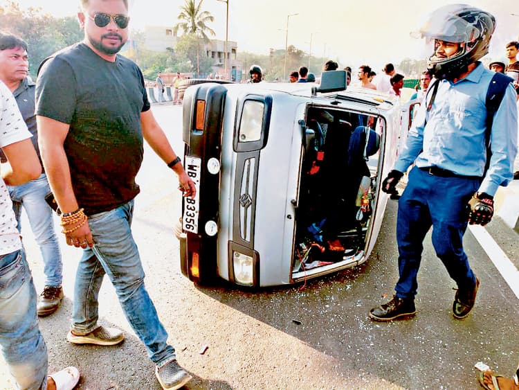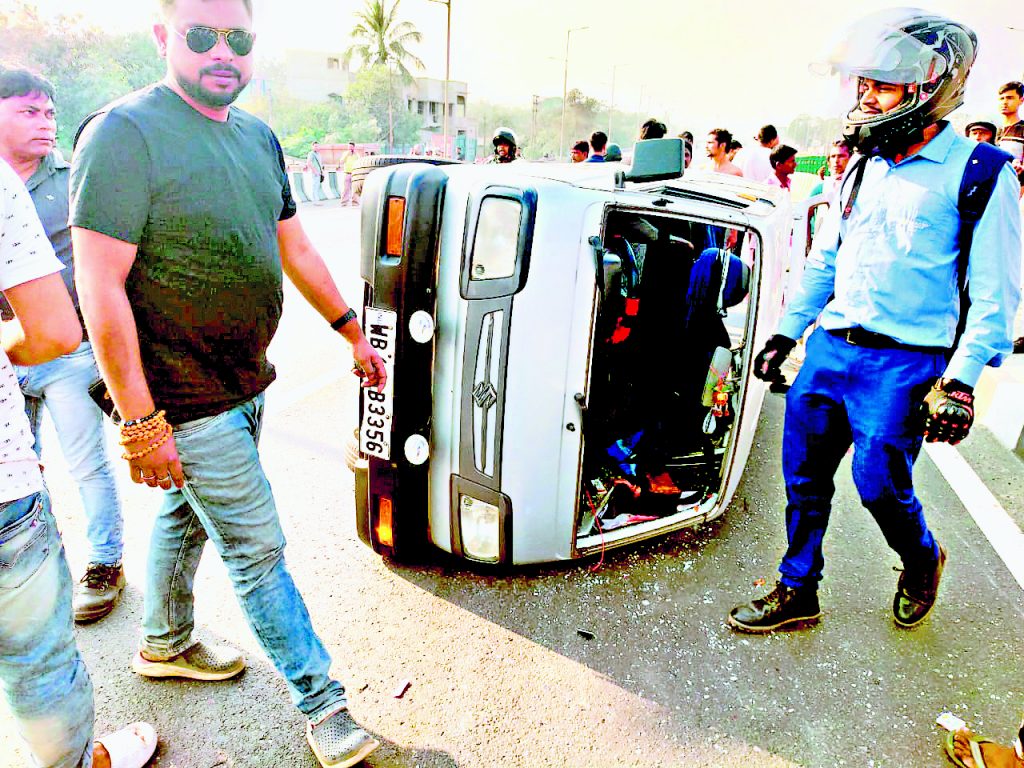 बुधवार को शहर के गोपाल माठ इलाके में जीटी रोड पर तेज रफ्तार में एक कार अनियंत्रित होकर पलट गयी, जिससे उसमें सवार एक बच्चा समेत तीन लोग घायल हो गये. हादसे के तुरंत बाद स्थानीय लोग बचाव कार्य में जुट गये. सूचना पाकर ट्रैफिक पुलिस भी वहां पहुंची और स्थानीय लोगों की मदद से तीनों घायलों को कार से निकाल कर तुरंत नजदीकी अनुमंडल अस्पताल पहुंचाया. घटना के बाद जीटी रोड पर कुछ देर के लिए यातायात अवरुद्ध रहा. अन्य वाहन वालों को परेशानी झेलनी पड़ी. स्थानीय पुलिस एवं ट्रैफिक पुलिस के हस्तक्षेप के बाद क्षतिग्रस्त वाहन को रास्ते से हटाया गया, तब वहां से आवाजाही सामान्य हुई.सूत्रों की मानें, तो दुर्घटनाग्रस्त कार अंडाल की ओर से तेज गति में दुर्गापुर की ओर जा रही थी. गोपाल माठ इलाके में जीटी रोड के फ्लाइओवर से गुजरते समय कार बेकाबू होकर डिवाइडर से भिड़ी और आसनसोल की ओर जानेवाली दूसरी सड़क पर पलट गयी. इससे कार में सवार बच्चा समेत दो लोग गंभीर रूप से घायल हो गये.