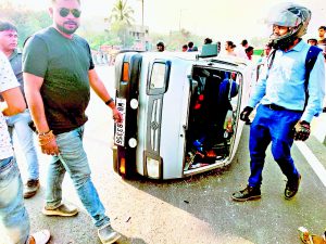 गोपाल माठ में जीटी रोड पर कार पलटी, तीन लोग जख्मी