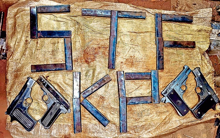 मुर्शिद के घर से चार 7.65 एमएम पिस्तौल, आठ पीस बैरल, 28 पीस अर्द्ध निर्मित मैगजीन, नौ पीस केएफ 7.65 का जिंदा कारतूस, अर्द्धनिर्मित 10 पीस देसी पिस्तौल, दो पीस ड्रिल मशीन, एक बंडल रिसेल स्प्रिंग, एक बंडल मैगजीन स्प्रिंग, एक बक्सा ट्रिगन में इस्तेमाल होने वाला स्प्रिंग, एक पीस एंगल ग्राइंडर मशीन, पांच पीस हथौड़ा, आठ पीस रेती, नौ पीस सेमी सर्किल रेती, 27 पीस छेनी छिपटा, एक छोटा कीपैड मोबाइल, एक एंड्रायल मोबाइल, ट्रेन का एक टिकट, सात पीस हेक्सा ब्लेड (आरी), छह पीस राउंड फाइल (रेती) , पांच पीस स्क्वायर फाइल (रेती), 12 पीस हाफ रांउड फाइल (रेती), चार पीस नुकीली छेनी, 27 पीस छेनी चिपटा आकार वाला, 12×8 आयरन प्लेट, एक प्लाश, 2 पीस हैंड वाइस, दो पीस एडजस्टेबल हैंड रिंच आदि बरामद किया है.