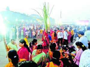 गंधेश्वरी और द्वारकेश्वर नदी के घाटों पर उगते सूरज को अर्घ्य देने उमड़ी श्रद्धालुओं की भीड़