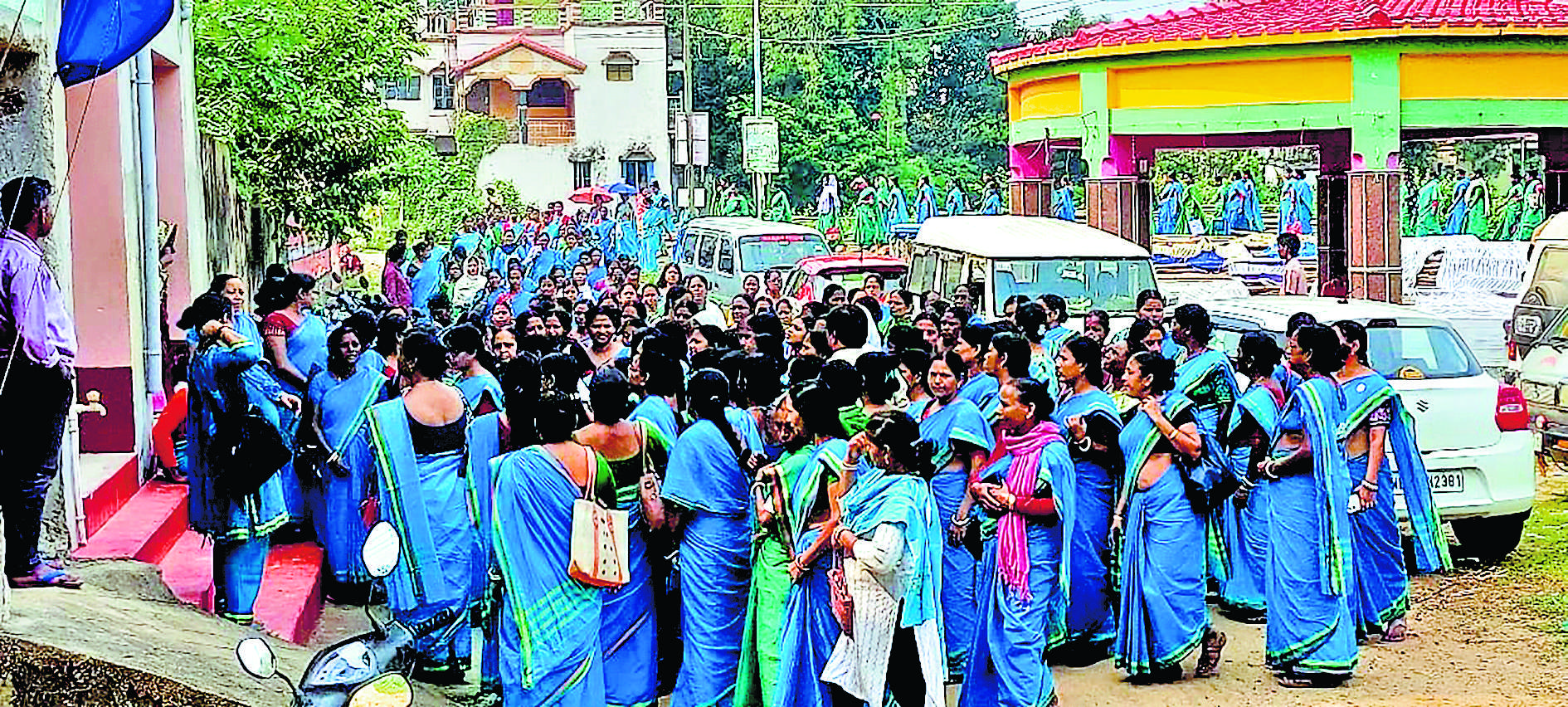 रायपुर प्रखंड की पश्चिम बंगाल आइसीडीएस वर्कर्स एसोसिएशन की रायपुर शाखा की पहल पर कार्यकर्ताओं और सहायिकाओं ने मंगलवार को रायपुर सीडीपीओ को 11 सूत्री मांग पत्र सौंपा. इसमें बच्चों के लिए पौष्टिक भोजन, ईंधन की बढ़ती कीमतों के अनुरूप अनुदान वृद्धि, कार्यकर्ताओं के लिए 26 हजार रुपये मासिक वेतन और बिना शर्त स्मार्टफोन उपलब्ध कराने जैसी प्रमुख मांगें शामिल थीं.सीडीपीओ ने समाधान का दिया आश्वासन