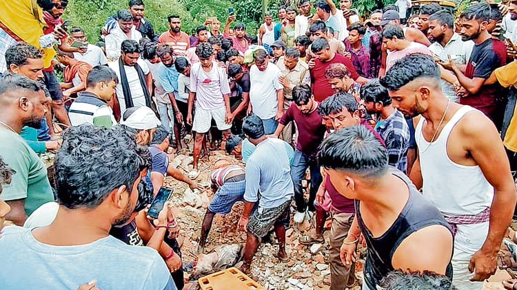 शनिवार को नेशनल हाइवे-60 के चौड़ीकरण कार्य के दौरान साहेबगंज में रानीगंज माइनिंग इंस्टीट्यूट के परित्यक्त मकान के जर्जर हिस्से से लोहे के सरिये व पुरानी ईंट निकालते समय अचानक वो हिस्सा भरभरा कर ढह गया, इसके मलबे में दब कर दो युवकों की जान चली गयी. उनके नाम राजीव दास(19) और श्रीचरण बाउरी(20) बताये गये हैं. राजीव साहेबगंज और श्रीचरण गिरजापाड़ा काठगादा का रहनेवाला था. रानीगंज के साहेबगंज मोड़ के पास राष्ट्रीय राजमार्ग – 60 के किनारे सड़क चौड़ीकरण के लिए उक्त मकान को नेशनल हाइवे आथॉरिटी ऑफ इंडिया(एनएचएआइ) ने अधिग्रहण किया है. जर्जर मकान से सरिये व ईंट निकालते समय सहसा उसका बड़ा हिस्सा ढह गया. मलबे में दोनों युवक दब गये. सूचना पाते ही रानीगंज थाने की बल्लभपुर चौकी की पुलिस घटनास्थल पर पहुंची और स्थानीय लोगों के साथ बचाव कार्य में जुट गयी. त्वरित बचाव के लिए विभिन्न साजो-सामान मंगाये गये. मकान के मलबे को जेसीबी मशीन लगा कर हटाया गया.. लगभग दो घंटों की मशक्कत के बाद मलबे को हटा कर अचेत युवकों को बाहर निकाला गया और नजदीकी जिला अस्पताल ले जाया गया. वहां डॉक्टरों ने दोनों को मृत करार दिया. घटना के बाद वहां सैकड़ों लोगों की भीड़ जुट गयी.इस बीच, दोनों शवों को कब्जे में लेकर पुलिस ने पोस्टमॉर्टम के लिए सरकारी अस्पताल भेज दिया है. इस बीच, स्थानीय लोगों ने रोष जताते हुए कहा कि जब राष्ट्रीय राजमार्ग प्रबंधन ने परित्यक्त भवन का अधिग्रहण किया था, तभी इसे तोड़ कर गिरा दिया गया होता, तो आज अनहोनी नहीं होती. इलाके के कुछ बेरोजगार युवक थोड़ी कमाई के लालच में उस परित्यक्त व जीर्ण-शीर्ण मकान से रॉड व ईंटें निकाल रहे थे. तभी यह हादसा हो गया और दो जानें चली गयीं. अगर राष्ट्रीय राजमार्ग प्रबंधन ने जर्जर मकान को पहले ही तोड़ कर गिरा दिया होता, तो आज यह हादसा नहीं होता. इस बीच, पुलिस ने जर्जर मकान को पूरी तरह से ढहा दिया है.