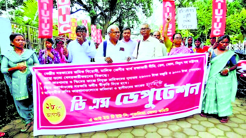 जिले में ठेका मजदूरों के स्थाईकरण, मजदूरी में वृद्धि और ठेका प्रथा के उन्मूलन की मांग को लेकर गुरुवार को एआईयूटीयूसी की ओर से विरोध प्रदर्शन किया गया. संगठन की ओर से जिला शासक कार्यालय को ज्ञापन सौंपा गया. जुबली मैदान से संगठन के नेता, कार्यकर्ता और समर्थक रैली निकालकर शहर के विभिन्न हिस्सों से गुजरते हुए जिला शासक कार्यालय पहुंचे. वहां मजदूरों की समस्याओं और मांगों को लेकर विरोध प्रदर्शन किया गया. संगठन का कहना है कि मजदूरों को कम मजदूरी देकर 14 घंटे तक काम कराया जा रहा है, जबकि श्रम कानून में आठ घंटे का प्रावधान है. मांग की गयी कि मजदूरों का स्थायीकरण किया जाये, उन्हें मासिक वेतन 26 हजार रुपये और नौ हजार रुपये पेंशन दी जाये. साथ ही, कारखानों में भूमिदाताओं और स्थानीय बेरोजगारों को स्थायी रोजगार देने की मांग की गयी.डिस्क्लेमर: यह प्रभात खबर समाचार पत्र की ऑटोमेटेड न्यूज फीड है. इसे प्रभात खबर डॉट कॉम की टीम ने संपादित नहीं किया है