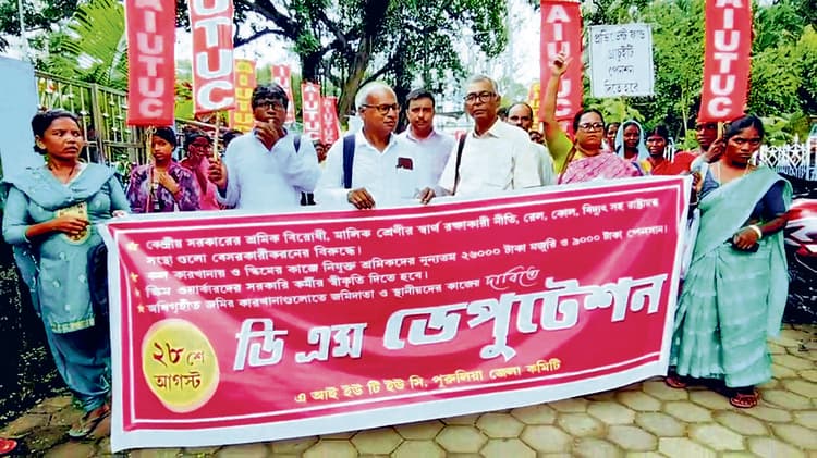 जिले में ठेका मजदूरों के स्थाईकरण, मजदूरी में वृद्धि और ठेका प्रथा के उन्मूलन की मांग को लेकर गुरुवार को एआईयूटीयूसी की ओर से विरोध प्रदर्शन किया गया. संगठन की ओर से जिला शासक कार्यालय को ज्ञापन सौंपा गया. जुबली मैदान से संगठन के नेता, कार्यकर्ता और समर्थक रैली निकालकर शहर के विभिन्न हिस्सों से गुजरते हुए जिला शासक कार्यालय पहुंचे. वहां मजदूरों की समस्याओं और मांगों को लेकर विरोध प्रदर्शन किया गया. संगठन का कहना है कि मजदूरों को कम मजदूरी देकर 14 घंटे तक काम कराया जा रहा है, जबकि श्रम कानून में आठ घंटे का प्रावधान है. मांग की गयी कि मजदूरों का स्थायीकरण किया जाये, उन्हें मासिक वेतन 26 हजार रुपये और नौ हजार रुपये पेंशन दी जाये. साथ ही, कारखानों में भूमिदाताओं और स्थानीय बेरोजगारों को स्थायी रोजगार देने की मांग की गयी.डिस्क्लेमर: यह प्रभात खबर समाचार पत्र की ऑटोमेटेड न्यूज फीड है. इसे प्रभात खबर डॉट कॉम की टीम ने संपादित नहीं किया है