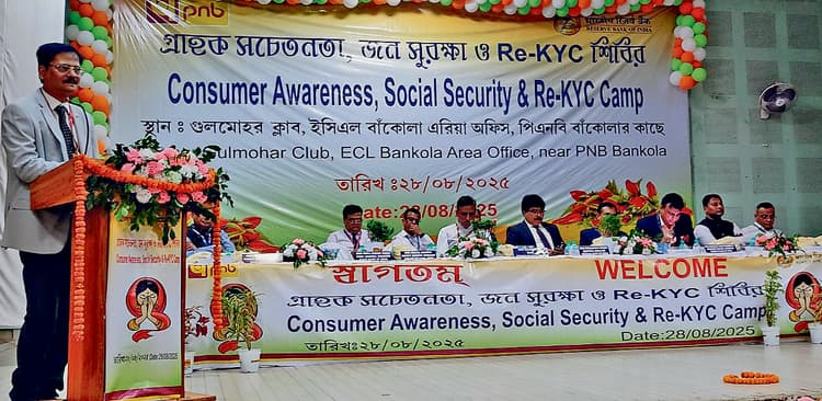 पंजाब नेशनल बैंक (पीएनबी) और भारतीय रिजर्व बैंक (आरबीआई) के संयुक्त तत्वावधान में गुलमोहर पार्क, इसीएल, पीएनबी बंकोला के पास एक ग्राहक जागरूकता, सामाजिक सुरक्षा और री-केवाईसी शिविर का आयोजन किया गया. इस शिविर का उद्देश्य दूर-दराज के क्षेत्रों में रहने वाले लोगों को वित्तीय समावेशन और सामाजिक सुरक्षा योजनाओं से जोड़ना था. इस मौके पर पंजाब नेशनल बैंक के अंचल प्रमुख संजीव कुमार, दुर्गापुर मंडल प्रमुख दीपक आचार्य और भारतीय रिजर्व बैंक के क्षेत्रीय निदेशक सुधांशु प्रसाद मुख्य रूप से उपस्थित थे. अतिथियों ने दीप प्रज्वलित कर शिविर का उद्घाटन किया.डिजिटल धोखाधड़ी से बचाव पर जोर