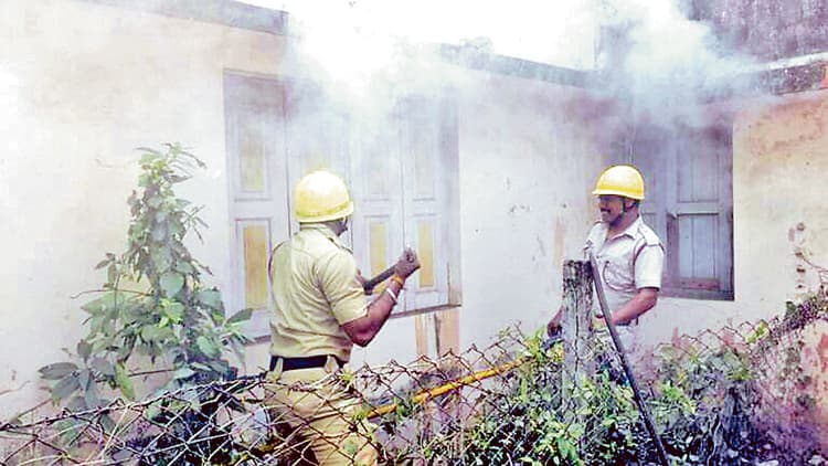 शहर के डीएसपी टाउनशिप के कनिष्क रोड स्थित क्वार्टर नंबर 1/126 में सोमवार सुबह आग लग गयी. घर के अंदर से धुआं निकलता देख पड़ोसी दौड़कर आये और पुलिस व दमकल विभाग को सूचित किया गया. घटना की सूचना पाकर दमकल की एक गाड़ी पहुंची और आग बुझाने का काम शुरू किया. पुलिस भी मौके पर पहुंच गयी. कई घंटों की मशक्कत के बाद आखिरकार आग पर काबू पा लिया गया. पड़ोसी सुमन घोषाल ने बताया कि यह क्वार्टर गुरुपद सेनगुप्ता के नाम पर है. उनके दो बेटे बाहर काम करते हैं. यह क्वार्टर काफी समय से बंद है. उन्होंने कहा कि उन्हें नहीं पता कि आग कैसे लगी. यदि घर के अंदर गैस सिलेंडर होता तो वह फट सकता था और भयंकर हादसा हो सकता था. घर बंद होने के कारण अग्निशमन कर्मियों को बाहर से आग बुझाने में कठिनाइयों का सामना करना पड़ा. सुबह हुई इस घटना से इलाके में हड़कंप मच गया.डिस्क्लेमर: यह प्रभात खबर समाचार पत्र की ऑटोमेटेड न्यूज फीड है. इसे प्रभात खबर डॉट कॉम की टीम ने संपादित नहीं किया है