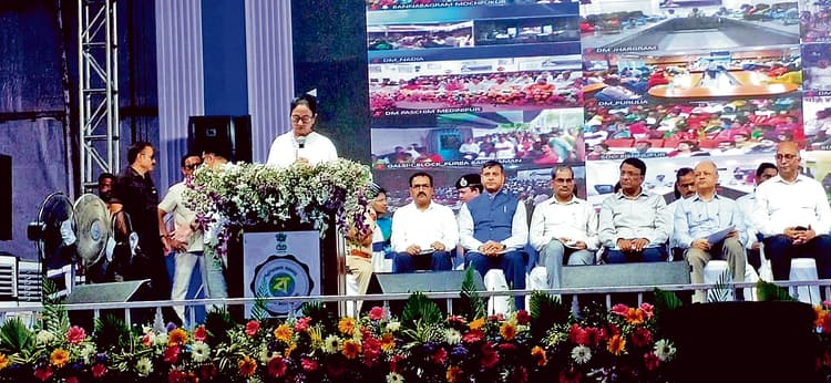 बर्दवान/पानागढ़. राज्य की मुख्यमंत्री ममता बनर्जी ने मंगलवार को पूर्व बर्दवान जिला दौरे के क्रम में बर्दवान म्युनिसिपल बॉयज हाइस्कूल मैदान से प्रशासनिक सभा मंच पर कई योजनाओं की सौगात दी. इस दौरान पूर्व और पश्चिम बर्दवान जिले के करीब 900 लोगों को भूमि का पट्टा प्रदान किया गया. वहीं ‘सबुज साथी’ योजना के तहत कक्षा नौ के साढ़े बारह लाख छात्र-छात्राओं को साइकिल दी गयी. साथ ही दोनों जिलों को मिलाकर करीब एक हजार करोड़ रुपये की विभिन्न योजनाओं का शिलान्यास किया गया. परियोजनाओं का उद्घाटन और शिलान्यास: मुख्यमंत्री ने इस मंच से कई परियोजनाओं का उद्घाटन किया. उन्होंने कहा कि पूर्व और पश्चिम बर्दवान पहले एक ही जिला था, बाद में दोनों को अलग-अलग जिलों में बांटा गया. सीएम ने पूर्व बर्दवान जिले में धार्मिक स्थलों और मंदिरों के विकास का उल्लेख किया. इस अवसर पर जिले की कई सड़कों का उद्घाटन किया गया. तीन कंक्रीट ब्रिजों का उद्घाटन किया गया. साथ ही जिले के कई इलाकों में पानी सप्लाई की नयी व्यवस्था शुरू की गयी.