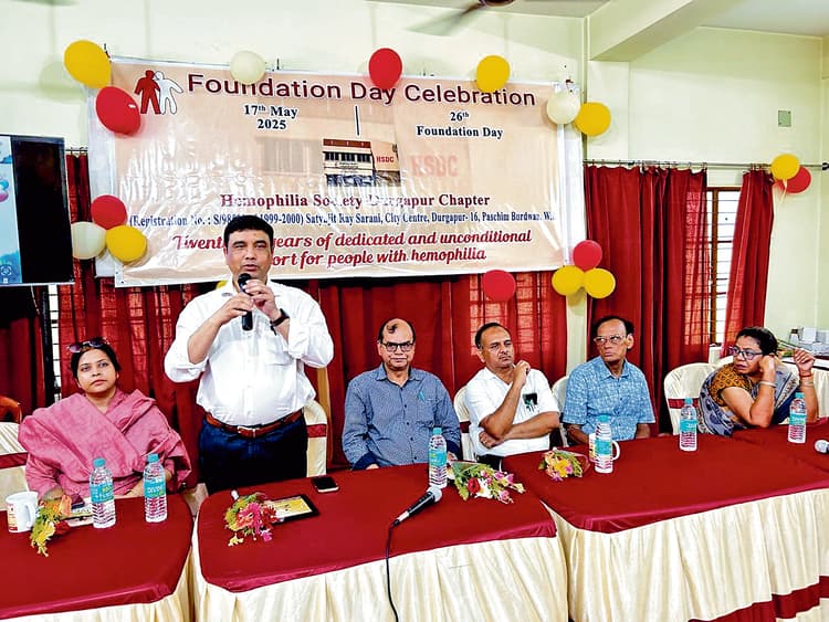 हीमोफीलिया सोसायटी-दुर्गापुर चैप्टर ने शनिवार को अपना 26वां स्थापना दिवस मनाया. कार्यक्रम में विशिष्ट अतिथि के रूप में पश्चिम बंगाल सरकार के नोडल अफसर, हीमोग्लोबिनोपैथी, एडीएचएस (एनसीडी 1) ) डॉ निमाई चंद्र मंडल, एनआरएस मेडिकल कॉलेज एंड हॉस्पिटल, कोलकाता के हेमेटोलॉजी विभाग के एचओडी प्रो तूफान कांति दोलई, पश्चिम बर्दवान के डिप्टी -सीएमओएच डॉ अनन्या मुखर्जी, सब-डिवीजन अस्पताल, दुर्गापुर के चिकित्सा अधीक्षक डॉ धीमान मंडल,आसनसोल दुर्गापुर विकास प्राधिकरण व रोगी कल्याण समिति दुर्गापुर के अध्यक्ष कबी दत्ता, मिशन अस्पताल, दुर्गापुर के चिकित्सा अधिकारी, डॉ. इप्सिता नाग मुख्य रूप से उपस्थित रहे. मौके पर प्रो(डॉ) तूफान कांति दोलई ने हीमोफीलिया रोगियों व उनके परिवारों की बेहतरी के लिए उनके निरंतर बिना शर्त समर्थन व प्रयासों के लिए एचएसडीसी की सराहना की. उन्होंने हीमोफीलिया प्रबंधन के उन्नत उपचार के बारे में अपने विचार को साझा किया और सभी से किसी भी आगे की सहायता के लिए एनआरएस अस्पताल से संपर्क करने का अनुरोध किया. डॉ निमाई चंद्र मंडल ने हीमोफीलिया उपचार के प्रति सरकार की नीति और समर्थन के बारे में बताया और सभी से समय पर उचित उपचार प्राप्त करने के लिए सरकार के साथ सहयोग करने का अनुरोध किया. डॉ अनन्या मुखर्जी ने स्थापना दिवस समारोह के लिए सभी हीमोफीलिया रोगियों और उनके परिवारों को अपनी शुभकामनाएं और हार्दिक धन्यवाद व्यक्त किया. उन्होंने डॉ निमाई मंडल से हीमोफीलिया रोगियों के लिए दुर्गापुर सब डिविजनल अस्पताल में एक समर्पित बिस्तर के लिए अनुरोध किया. कबी दत्ता ने हीमोफीलिया पीड़ितों को उनकी बेहतरी और दर्द मुक्त जीवन के लिए हर संभव सहायता का आश्वासन दिया और हीमोफीलिया के लाभान्वितों के लिए उत्कृष्ट गतिविधियों के आयोजन के लिए दुर्गापुर चैप्टर को धन्यवाद दिया. डॉ. इप्सिता नाग ने हीमोफीलिया के बारे में जागरूकता कार्यक्रम चलाने पर जोर दिया, ताकि समय रहते इसका पता लगाया जा सके, उचित उपचार किया जा सके और रोकथाम की जा सके. इस अवसर पर दुर्गापुर चैप्टर ने अत्यंत जरूरतमंद और दिव्यांग हीमोफीलिया रोगियों के लिए दो व्हीलचेयर दान की.डिस्क्लेमर: यह प्रभात खबर समाचार पत्र की ऑटोमेटेड न्यूज फीड है. इसे प्रभात खबर डॉट कॉम की टीम ने संपादित नहीं किया है