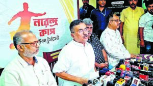 पश्चिम बंगाल की राजनीति में भाजपा ने एक बड़ा कदम उठाते हुए स्वामी विवेकानंद के नाम पर ‘नरेंद्र कप नॉक आउट फुटबॉल टूर्नामेंट’ आयोजित करने का ऐलान किया है. यह प्रतियोगिता 11 सितंबर से शुरू होकर सात दिनों तक चलेगी और राज्य के 43 अलग-अलग स्थानों पर खेली जाएगी. आसनसोल में आयोजित पत्रकार सम्मेलन में शुभेंदु अधिकारी ने इस प्रतियोगिता की औपचारिक घोषणा की.