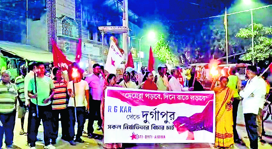 दुर्गापुर के निजी मेडिकल कॉलेज एंड हॉस्पिटल की छात्रा से हुई दुष्कर्म की घटना के खिलाफ यहां वल्लभपुर में माकपा ने की ओर से मशाल रैली निकाली गयी. इसमें माकपा नेताओं व कैडरों के साथ बड़ी संख्या में श्रमिक, किसान, महिलाएँ, युवा और इलाके के आम नागरिक बड़ी संख्या में शामिल हुए. रैली में शामिल लोगों ने दुष्कर्म के दोषियों को कड़ी से कड़ी सजा देने की मांग की. पूरे बंगाल में महिलाओं की सुरक्षा सुनिश्चित करने की मांग करते हुए जोरदार नारेबाजी भी की गयी. वल्लभपुर पार्टी कार्यालय से निकली मशाल रैली साहिबगंज मोड़ पर नेताजी की मूर्ति के पास जाकर समाप्त हुई. इस घटना और राज्य की सुरक्षा व्यवस्था पर अपनी प्रतिक्रिया देते हुए वामपंथी नेता हेमंत प्रभाकर ने कहा कि दुर्गापुर में मेडिकल छात्रा से दरिंदगी की घटना निंदनीय है. किसी भी सभ्य समाज में ऐसी घटना के लिए जगह नहीं हो सकती. हेमंत प्रभाकर ने राज्य सरकार पर तीखा हमला करते हुए कहा, “आज बंगाल में अपराधियों की सरकार चल रही है, जिससे यहां बलात्कारी बेखौफ घूम रहे हैं. चिंता जतायी कि छोटी बच्ची हो या बुजुर्ग महिला, आदिवासी महिला हो या अन्य किसी भी धर्म की महिला, कोई भी यहां सुरक्षित नहीं है. उन्होंने मुख्यमंत्री के बयान पर भी आपत्ति जतायी, जिसमें उन्होंने महिलाओं को रात में बाहर निकलने से बचने की बात कही थी. प्रभाकर ने आगे कहा कि यह आजाद देश है, जहां महिलाओं को किसी भी समय घर से निकलने की आजादी है. उन्होंने जोर दिया कि प्रशासन को उनकी सुरक्षा सुनिश्चित करनी होगी, जिसमें वर्तमान राज्य प्रशासन पूरी तरह से नाकाम रहा है. इस गंभीर मुद्दे पर विरोध दर्ज कराने के लिए शनिवार को दुर्गापुर में व्यापक विरोध प्रदर्शन किया जायेगा.डिस्क्लेमर: यह प्रभात खबर समाचार पत्र की ऑटोमेटेड न्यूज फीड है. इसे प्रभात खबर डॉट कॉम की टीम ने संपादित नहीं किया है