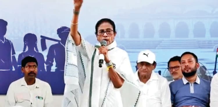ममता बनर्जी ने केंद्र की सत्ता पर काबिज भाजपा को ””तानाशाही सरकार”” करार दिया. उन्होंने कहा कि भाजपा संविधान के अध्यायों को बदलने का प्रयास कर रही है. उन्होंने भाजपा की कथनी और करनी में अंतर बताते हुए कहा, ‘मैंने लक्खी भंडार का वादा किया और उसे पूरा किया. इसके विपरीत, भाजपा ने दिल्ली चुनाव में ढाई हजार रुपये देने का वादा किया था जो आज तक अधूरा है. बिहार में भी चुनाव से पहले पैसे दिये गये और बाद में बुलडोजर चलाकर उन रुपयों को वापस मांगा जाने लगा.’