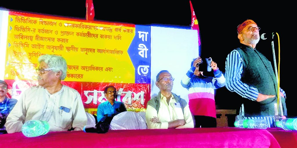 जिले में दामोदर घाटी निगम (डीवीसी) के मेजिया थर्मल पावर स्टेशन(एमटीपीएस) के कॉलोनी गेट के बाहर वामपंंथी श्रमिक यूनियन की ओर से कई मुद्दों को लेकर विरोध रैली निकाली गयी, फिर वहां प्रतिवाद सभा आयोजित हुई. विरोध रैली में माकपा नेता व सांसद विकास रंजन भट्टाचार्य भी शामिल हए. उसके बाद प्रतिवाद सभा के मंच से उन्होंने केंद्र की भाजपा नीत राजग सरकार और पश्चिम बंगाल की सत्ताधारी तृणमूल कांग्रेस को कई मुद्दों को लेकर घेरा. आरोप लगाया कि केंद्र की भाजपा सरकार यहां डीवीसी के निजीकरण की साजिश रच रही है और इसमें यहां की तृणमूल सरकार परोक्ष रूप से मदद कर रही है. डीवीसी श्रमिक संघों के एक वर्ग की मांगों का समर्थन करते हुए विकास रंजन ने कहा कि जिस तरह से केंद्र सरकार डीवीसी को लेकर अपना एजेंडा चला रही है, उससे संकेत अच्छे नहीं हैं. यहां की मां, माटी व मानुष का होने का दम भरनेवाली यहां की तृणमूल सरकार केंद्र सरकार की राह के रोड़े हटा कर उसकी मदद कर रही है. ध्यान रहे कि वरिष्ठ माकपा नेता विकास रंजन भट्टाचार्य डीवीसी श्रमिक संघ के अध्यक्ष भी है. उन्होंने कहा कि डीवीसी राष्ट्रीय संसाधन है, जिसकी सुरक्षा करना हमलोगों की जिम्मेदारी है. विरोध सभा के मंच पर डीवीसी श्रमिक संघ के कार्यकारी अध्यक्ष समीर बाइन, महासचिव अभिजीत रॉय, डीवीसी वर्कर्स यूनियन ज्वॉइंट फोरम के संयोजक जीवन आइच, सीटू जिला सचिव सोमेंदु मुखर्जी उपस्थित थे.सभा के मंच पर यूटीयूसी के अखिल भारतीय अध्यक्ष और आरएसपी नेता अशोक घोष भी मौजूद थे. अशोक घोष ने कहा कि डीवीसी कोई औद्योगिक संगठन नहीं है. डीवीसी का गठन स्वतंत्रता के बाद बहुउद्देशीय नदी योजना और जन कल्याण कार्यों के लिए किया गया था. इसके लिए केंद्र सरकार ने अलग से कानून बनाया है. वरिष्ठ अधिवक्ता विकास रंजन भट्टाचार्य ने आगे कहा कि डीवीसी किसी पूंजीपति की दी गयी राशि से नहीं, बल्कि देश की जनता के राजस्व से गठित हुआ है. अनेक राष्ट्रीय संपदाओं का निर्माण हुआ. इतनी अकूत संपदा खरीदने की ताकत किसी उद्योगपति में नहीं है. इसलिए कुछ माह पहले केंद्रीय ऊर्जा मंत्री मनोहरलाल खट्टर यहां डीवीसी मुख्यालय आये थे और डीवीसी को उत्पादन, आपूर्ति व वितरण तीन भागों में बांट कर निगमीकरण की घोषणा की थी.
