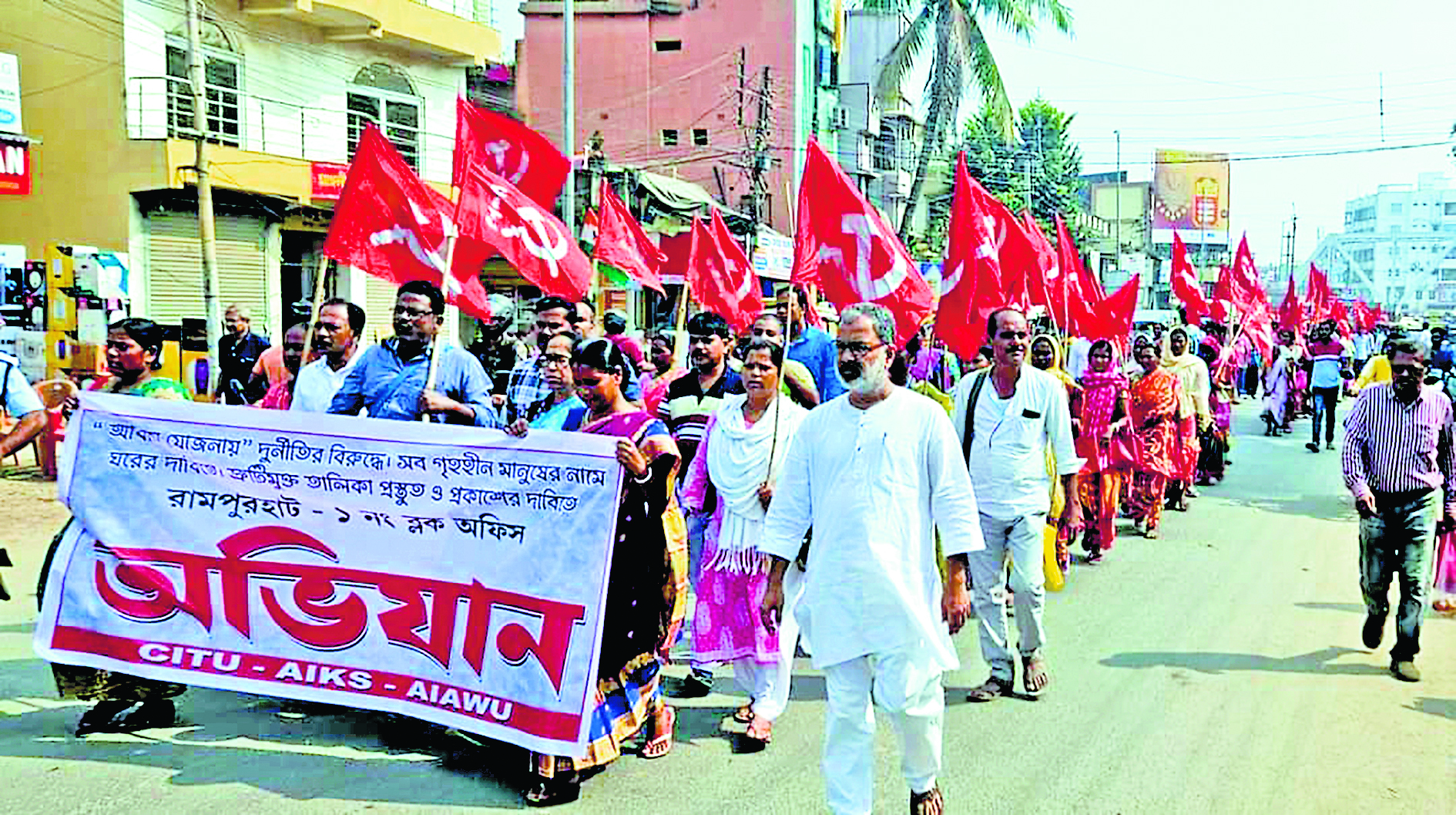 माकपा की रामपुरहाट ब्लॉक-01 कमेटी की ओर से जिले में आवास योजना को लेकर कथित धांधली के खिलाफ विरोध रैली निकाली गयी. इसमें बड़ी संख्या में माकपा नेता व कैडर शामिल हुए. शिकायत है कि जिले में आवास योजना के तहत आवेदन के बावजूद सैकड़ों लोगों के नाम जारी हुई सूची में नहीं है. हाल में जारी हुई लाभार्थियों की सूची में ऐसे कई लोगों के नाम हैं, जिनके अपने पक्के मकान, गाड़ी व अन्य अचल संपत्ति है. फिर भी इन लोगों को उक्त योजना के अधीन आवास चाहिए. जबकि उक्त योजना के तहत असल हकदार व पात्रों के नाम लाभार्थियों की तालिका में नहीं है. इसे लेकर लोगों में काफी नाराजगी है. इसे लेकर माकपा के गण संगठन ने सड़क पर उतर कर प्रतिवाद जताया. आरोप है कि उक्त योजना के लाभार्थियों की सूची में गड़बड़ी की गयी है और इसके पीछे स्थानीय तृणमूल कांग्रेस नेता हैं. मांग की गयी कि उक्त योजना के अधीन समुचित सर्वेक्षण के बाद हकदार लोगों के नाम के साथ लाभार्थियों की नयी सूची जारी की जाये. माकपा की विरोध रैली में उसके खेत मजदूर व कृषक संगठन के सदस्य भी शामिल हुए. माकपा की रामपुरहाट-01 ब्लॉक कमेटी के आह्वान पर बीडीओ कार्यालय के बाहर धरना प्रदर्शन भी किया गया. उसके बाद अपनी मांगों पर केंद्रित एक ज्ञापन बीडीओ को दिया गया. मौके पर माकपा नेता संजीव बर्मन, संजीव मल्लिक, नजमुल हुदा, अब्दुल आलिम व निताई लेट आदि सक्रिय रहे.डिस्क्लेमर: यह प्रभात खबर समाचार पत्र की ऑटोमेटेड न्यूज फीड है. इसे प्रभात खबर डॉट कॉम की टीम ने संपादित नहीं किया है