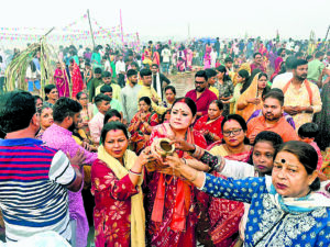 उगते सूर्य को लाखों व्रतियों का अर्घ्य