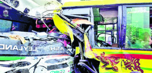 सोमवार सुबह पूर्व बर्दवान जिले के कालना थाना क्षेत्र के धात्री ग्राम में तेज रफ्तार यात्री बस और डंपर में आमने-सामने की टक्कर हो गयी, जिससे बस में सवार करीब 20 यात्री घायल हो गये. कालना महकमा अस्पताल में पांच घायलों की हालत गंभीर बतायी गयी है. हादसे के बाद यात्रियों की चीख-पुकार सुन कर आसपास के लोग वहां पहुंचे और बचाव-कार्य में जुट गये. क्षतिग्रस्त यात्री बस के अंदर से घायलों को निकाला गया. सूचना पाते ही पुलिस भी घटनास्थल पर पहुंची और स्थानीय लोगों की मदद से घायलों को नजदीकी कालना महकमा अस्पताल पहुंचाया. पुलिस ने बताया कि धात्री ग्राम के उत्तर रेल फाटक के पास यह हादसा हुआ. यात्री बस और डंपर के बीच आमने-सामने की भीषण भिड़ंत हो गयी. स्थानीय लोगों ने बताया कि तेज गति से बस यात्रियों को लेकर नवद्वीप कृष्णनगर से बर्दवान लौट रही थी, तभी उल्टी दिशा से तेज गति में एक डंपर आ गया और दोनों वाहनों में भीषण टक्कर हो गयी. भिड़ंत से यात्री बस व डंपर के सामने का हिस्सा बुरी तरह क्षतिग्रस्त हो गया.क्षतिग्रस्त बस से घायलों को बाहर निकालने में मुश्किल हो रही थी. इसलिए दमकलकर्मियों को भी बुलाया गया. फिर दमकलकर्मियों की मदद से क्षतिग्रस्त बस से घायलों को बाहर निकाला गया और उन्हें कालना महकमा अस्पताल में भर्ती कराया गया. पुलिस ने मौके पर स्थिति संभाली. क्षतिग्रस्त वाहनों को थाने ले गयी. अस्पताल सूत्रों के अनुसार पांच घायल यात्रियों की अवस्था चिंताजनक है.