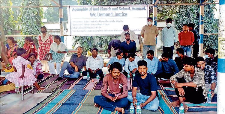 आसनसोल स्थित एजीएनआइ की ओर से 1963 में स्थापित एजी चर्च में मंगलवार को प्रबंधक कमेटी के पदाधिकारियों ने ताला लगा दिया. इसके विरोध में चर्च के 100 से अधिक पास्टरों व अनुयायियों ने चर्च के बाहर धरना प्रदर्शन किया. उनकी मांग है कि चर्च को तत्काल प्रार्थना और धार्मिक कार्यक्रमों के लिए खोला जाये.पास्टरों की सैलरी और आजीविका पर संकट