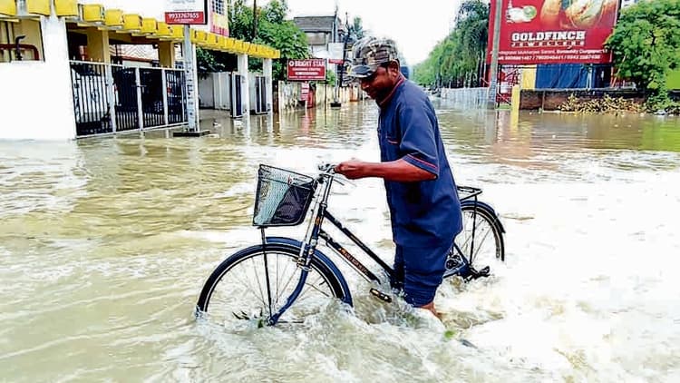 दुर्गापुर शहर एवं आसपास के इलाके में बुधवार की रात शुरू हुई लगातार तेज बारिश बुधवार भी जारी रही. जिसके कारण पूरे शहर में लोगों को परेशानी उठानी पड़ी. शहर के निचले इलाकों में पानी कई घरों में घुस जाने से रात भर लोगों को समस्या झेलनी पड़ी. निचले इलाका जैसे बेनाचिटी के 54 फुट, तपोवन , मेन गेट , तमला बस्ती, स्टील पार्क, विधाननगर, श्यामपुर, माना ग्राम, वारिया के इलाकों में स्थित नाले एवं सड़कें एक समान हो चुके हैं. ड्रेन भर जाने के कारण ड्रेन का पानी इलाकों में घुस कर सड़कों पर बहने लगा है. इलाके की सड़को में पानी घुटनों से ऊपर भर जाने से चारपहिया वाहन, मोटरसाइकिल आदि बिगड़ गये और भरे पानी में ही उन्हें खड़ा रहना पड़ा. बुधवार सुबह नगर निगम की ओर से राहत कार्य शुरू किया गया. निगम कर्मी विभिन्न इलाकों में जाकर युद्ध स्तर पर पानी को निकालने की कोशिशों में जुट गये हैं. दूसरी तरफ विधाननगर इलाके में जल निकासी की स्थिति देखने पहुंचे एग्जीक्यूटिव इंजीनियर को स्थानीय लोगों के गुस्से का शिकार होना पड़ा, लोगों ने उनके वाहन को रोककर प्रदर्शन किया. लोगों ने निगम पर कई आरोप लगाये. जिससे इलाके में कुछ देर के लिए तनाव व्याप्त हो गया. सूचना पाकर न्यू टाउनशिप थाने की पुलिस घटनास्थल पर पहुंची और स्थिति को नियंत्रित किया. इस दौरान स्टील पार्क के लोगों ने नगर निगम के पूर्व इंजीनियर पर निजी सुविधा के लिए नाला बंद कर सड़क बनाने का आरोप लगाया. लोगों ने आरोप लगाया कि जल निकासी होने वाली जगह पर दीवार खड़ी कर दी गयी है. जिस वजह से पूरे इलाके में पानी भर गया है. लोगों के आक्रोश को देख प्रशासन के निर्देश पर जेसीबी मशीन से उक्त दीवार को तोड़ दिया गया एवं जल निकासी व्यवस्था सुचारू की गयी.बारिश के कारण दुर्गापुर औद्योगिक क्षेत्र (आरआइपी प्लॉट ) और आसपास की विभिन्न फैक्टरियों में जल जमाव हो गया है. जिससे कारखानों में उत्पादन बुरी तरह प्रभावित हो गया. दुर्गापुर स्मॉल इंडस्ट्रीज एसोसिएशन के महासचिव रतन अग्रवाल ने बताया कि निगम का ड्रेनेज सिस्टम पूरी तरह से चरमरा गया है. कई फैक्टरियों के परिसर में जल जमाव से लाखों का कच्चा माल बर्बाद हो गया है. जबकि एसोसिएशन निगम को नियमित टैक्स देता है जिनमें ट्रेड लाइसेंस शुल्क, होल्डिंग टैक्स, ग्राउंड रेंट, टोल टैक्स, जीएसटी, फैक्टरी लाइसेंस शुल्क सहित कई अन्य टैक्स का भुगतान नियमित किया जाता है. इसके बावजूद निगम अपने करदाताओं को न्यूनतम बुनियादी सुविधाएं प्रदान करने में विफल है. निगम प्रशासन की लापरवाही के कारण ऐसी स्थिति हुई है. इस बारे में निगम की प्रशासक आनंदिता मुखर्जी ने बताया कि अचानक तेज बारिश के कारण निचले इलाकों में समस्या हुई है. निगम कर्मी लगातार स्थिति को सुधारने में जुटे हैं.