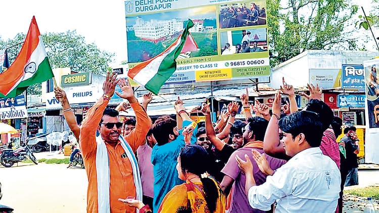 भारतीय सेना द्वारा पाकिस्तानी आतंकी ठिकानों पर किये गये ””ऑपरेशन सिंदूर”” की सफलता पर देशभर में खुशी की लहर है. सेना ने 26 निर्दोष पर्यटकों की हत्या का बदला लेकर आतंकियों को करारा जवाब दिया है. इसी उपलक्ष्य में दुर्गापुर के विश्व सनातनी एकता मंच की ओर से इस्पात नगर के चंडीदास बाजार में बैंड-बाजे के साथ जश्न मनाया गया. कार्यक्रम के दौरान राहगीरों में आलता, सिंदूर और मिठाइयां बांटी गयीं. मंच के सदस्यों ने पूरे बाजार में जयकार लगाकर लोगों को उत्साहित किया. कार्यक्रम का नेतृत्व जिला भाजपा महासचिव अभिजीत दत्ता, भाजपा नेता पारिजात गंगोपाध्याय और सुमंत मंडल ने किया.भाजपा महासचिव अभिजीत दत्ता ने कहा, “पाकिस्तानी आतंकवादियों ने 26 निर्दोष पर्यटकों की जान ली थी. उन्होंने 26 पत्नियों का सिंदूर छीन लिया था. भारतीय सेना ने उनके खिलाफ सख्त कार्रवाई की है. अगर इसके बाद भी पाकिस्तान ने सबक नहीं सीखा तो पाकिस्तान दुनिया के नक्शे से मिट जायेगा. “
