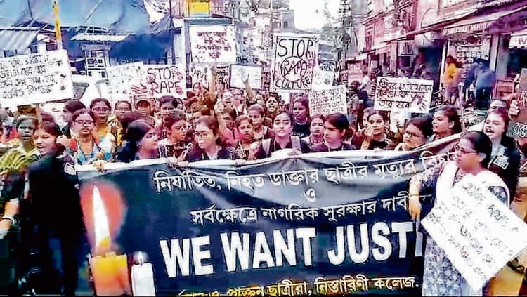 कोलकाता के आरजी कर अस्पताल में रेप व मर्डर की घटना के खिलाफ जिले के कई हिस्सों में स्कूल व कॉलेज के विद्यार्थियों ने सड़क पर उतर कर प्रतिवाद जताया. पीड़ित परिवार को जल्द न्याय और दोषी को कठोरतम सजा देने की मांग पर विद्यार्थियों ने विरोध रैली निकाली. नीतूरिया थाना क्षेत्र के नीतूरिया बालिका उच्च विद्यालय की छात्राओं व शिक्षकों ने रैली में ‘वी वांट जस्टिस’ के नारे लगाये और मामले में राज्य सरकार व उसकी पुलिस की भूमिका पर सवाल उठाये. उधर, शहर के निस्तरणी महिला कॉलेज की विद्यार्थियों ने भी प्रतिवाद रैली निकाली, जो शहर के विभिन्न क्षेत्रों से होते हुए टैक्सी स्टैंड पर जाकर समाप्त हुई. गुरुवार को ही जयपुर कॉलेज के विद्यार्थियों ने भी आरजी कर की घटना के खिलाफ मार्च किया. शहर के जेके कॉलेज से भी विद्यार्थियों ने मौन जुलूस निकाला, सबने मांग की कि उक्त घटना के पीड़ित परिवार को जल्द इंसाफ और कसूरवार को कठोर सजा दी जाये. साथ ही अस्पताल व अन्य स्थानों पर महिलाओं की सुरक्षा सुनिश्चित की जाये.डिस्क्लेमर: यह प्रभात खबर समाचार पत्र की ऑटोमेटेड न्यूज फीड है. इसे प्रभात खबर डॉट कॉम की टीम ने संपादित नहीं किया है