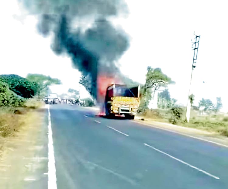 शनिवार को बीरभूम जिले के इलमबाजार थानांतर्गत घुडीसा ग्राम पंचायत क्षेत्र में राष्ट्रीय राजमार्ग (एनएच) -14 पर खादिम पुकुर चौराहे पर तेज गति से आ रही बाइक सामने एक ट्रक से टकरा गयी. भिड़ंत के बाद गाड़ियों में आग लग गयी. इसमें बाइक सवार बुरी तरह झुलस गया. घटना के बाद सड़क पर अफरा-तफरी मच गयी और आग लगने से धुएं का गुबार पूरे इलाके में फैल गया. सूचना पाकर इलमबाजार थाने की पुलिस और दमकलकर्मी वहां वहां पहुंचे और आग बुझाने में जुट गये. जल्द ही आग पर काबू पा लिया गया. घायल बाइक सवार को पुलिस ने नजदीकी इलमबाजार ब्लॉक स्वास्थ्य केंद्र में ले जाकर भर्ती कराया. अभी घायल बाइक सवार की पहचान नहीं हो पायी है. स्थानीय सूत्रों की मानें, तो शनिवार को सुबह तेज रफ्तार मोटर बाइक सामने 10 पहिया के ट्रक से भिड़ गयी. इससे ट्रक में आग लग गयी. सड़क पर ट्रक धू-धूकर जलने लगा. बताया गया है कि टक्कर के बाद बाइक समेत सवार ट्रक के नीचे चला गया. मोटरबाइक के घर्षण से चिनगारी निकली, जिससे ट्रक में आग लग गयी. सूचना पाते ही इलमबाजार थाने की पुलिस वहां पहुंची. हालांकि घायल बाइक सवार को पुलिस ने इलमबाजार ब्लॉक स्वास्थ्य केंद्र में भर्ती कराया है, जहां उसकी हालत स्थिर बतायी गयी है. घायल का वहां इलाज चल रहा है. दुर्घटना के कारण राष्ट्रीय राजमार्ग-14 अस्थायी रूप से अवरुद्ध हो गया. बाद में पुलिस ने वहां पहुंच कर स्थिति सामान्य की. अलबत्ता, हादसे की मुख्य वजह अभी पता नहीं चल पायी है. मामले की जांच में पुलिस लग गयी है. बाद में दमकल कर्मियों ने पहुंच कर आग को नियंत्रित किया .डिस्क्लेमर: यह प्रभात खबर समाचार पत्र की ऑटोमेटेड न्यूज फीड है. इसे प्रभात खबर डॉट कॉम की टीम ने संपादित नहीं किया है