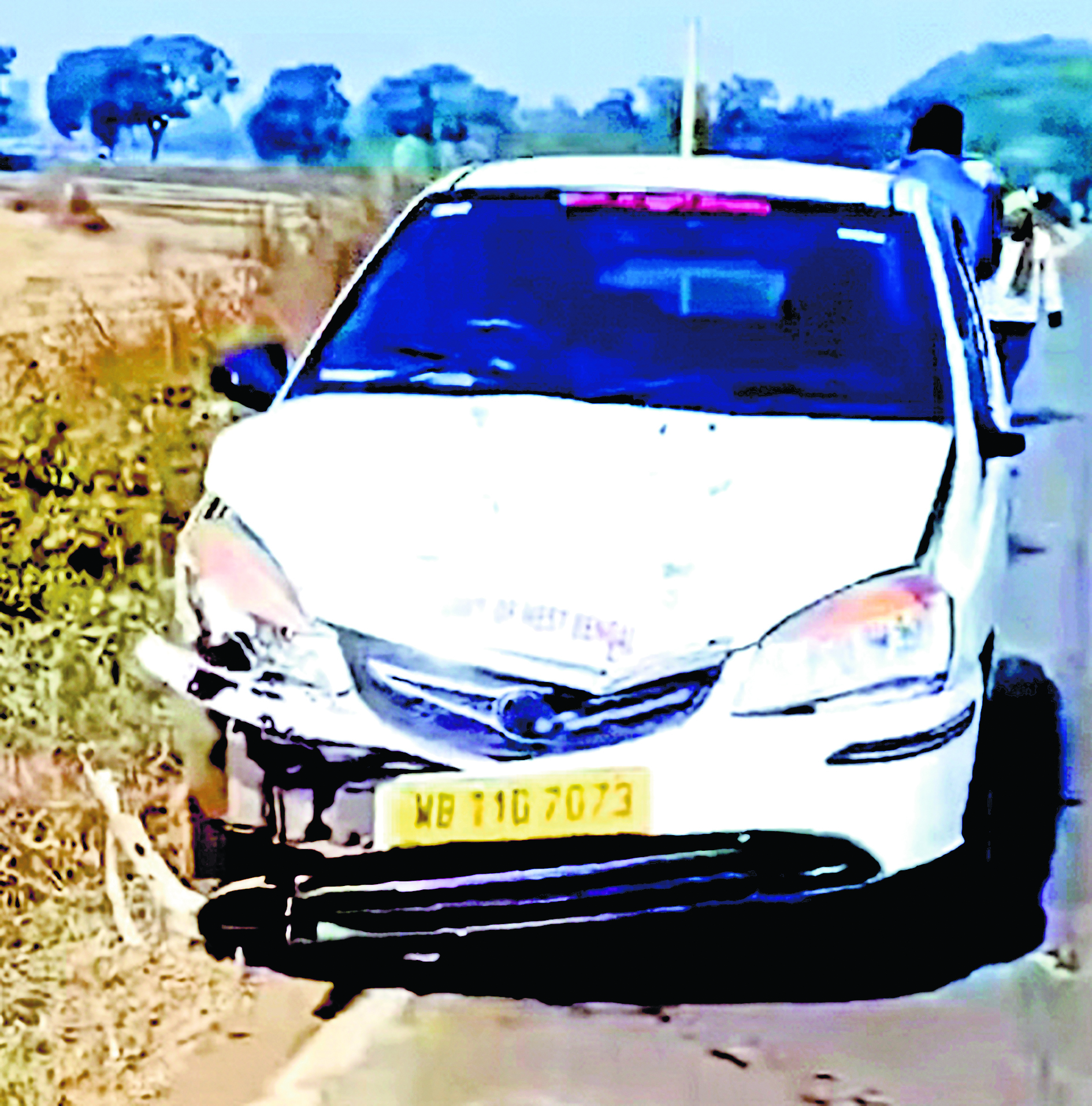 पूर्व बर्दवान जिले के मंतेश्वर थाना इलाके के जयरामपुर के पास शनिवार को सरकारी स्टीकर लगी एक कार और टोटो के बीच हुई जबरदस्त टक्कर में टोटो चालक समेत एक यात्री की मौत हो गयी. वहीं दो और टोटो सवार यात्री घायल हो गये. घायलों को बरामद कर स्थानीय ब्लॉक अस्पताल ले जाया गया है. उनकी स्थिति चिंताजनक होने पर उन्हें बर्दवान मेडिकल कॉलेज एंड हॉस्पिटल रेफर कर दिया गया. पुलिस ने घटना के बाद मौके वारदात पर पहुंच कर परिस्थिति को नियंत्रित किया. स्थानीय लोगों ने बताया कि कार पर गवर्नमेंट ऑफ वेस्ट बंगाल का स्टीकर लगा हुआ है. इस हादसे में दो लोगों की मौके पर ही मौत हो गयी जबकि दो को चिंताजनक अवस्था में अस्पताल भेजा गया है. पुलिस ने मृत टोटो चालक का नाम परेश नाथ रुद्र और मृत यात्री का नाम विश्वनाथ राय बताया है. परेश मंतेश्वर और विश्वनाथ श्यामनगर के रहने वाले थे.इस हादसे में टोटो में सवार दो स्वास्थ्य कर्मचारी घायल हुए हैं. उनके नाम अजीजा खातून और नजमा खातून हैं. कार मंतेश्वर से कुसुमग्राम की तरफ आ रही थी जबकि टोटो कुसुम ग्राम से मंतेश्वर जा रहा था. हादसे के बाद सरकारी वाहन का चालक फरार हो गया. पुलिस मामले को लेकर जांच पड़ताल में जुट गयी है.