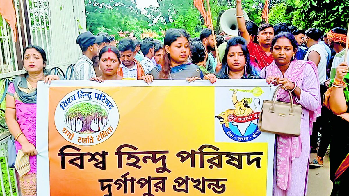 दुर्गापुर में विश्व हिंदू परिषद का विरोध प्रदर्शन, पुलिस के साथ धक्का-मुक्की