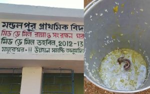 बीरभूम, मुकेश तिवारी. पश्चिम बंगाल के बीरभूम जिले के मयूरेश्वर थाने के मंडलपुर प्राथमिक विद्यालय में सोमवार को मध्याह्न भोजन (Mid Day Meal) में एक मृत सांप मिलने से हड़कंप मच गया था. इस विषाक्त भोजन की वजह से 20 बच्चे बीमार पड़ गये. इस मामले में जिला प्राथमिक विद्यालय संसद के चेयरमैन प्रलय नायक ने विद्यालय के प्रधानाध्यापक निमाई दे को शोकॉज किया है.