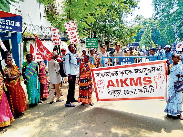 सारा भारत कृषक मजदूर सभा की बांकुड़ा जिला कमेटी के प्रतिनिधिमंडल ने विभिन्न मांगों को लेकर सोमवार को जिला शासक के कार्यालय में एक ज्ञापन सौंपा. मजदूर सभा के सदस्य सुबह 11 बजे जुलूस के रूप में जिलाधिकारी कार्यालय पहुंचे. वहां संगठन की राज्य कमेटी के सचिव शुभ्रांशु मुखर्जी, जिला सचिव रघुनाथ राय, राजीव कारी व रवींद्रनाथ सिंह ने कार्यक्रम को संबोधित किया. शुभ्रांशु मुखर्जी ने कहा कि राज्य में श्रम संसाधन नहीं है. किसानों को उनकी फसल का उचित मूल्य नहीं मिल रहा है. लंबे समय से 100 दिनों का काम बंद है. यह देश का ऐसा एकमात्र राज्य है. आवास योजनाओं में बेघर लोगों को सिर पर छत नहीं मिल रही है. बांकुड़ा जिले में हाथियों की समस्या ज्वलंत रूप ले चुकी है. हाथियों के हमले से लोग मर रहे हैं, घर नष्ट हो रहे हैं, फसलें रौंदी जा रही हैं लेकिन सरकार कुछ नहीं कर रही है. वनों में निवास करने वाले आदिवासी अपने जन्मसिद्ध अधिकार से आदिकाल से जंगलों में रहते और खेती करते आये हैं.कब्जे वाली भूमि पर अधिकार होने के बावजूद उन्हें भूमि संबंधी कागजात नहीं दिये जा रहे हैं. उल्टे उन्हें बेदखल करने की साजिश की जा रही है. कुछ ही दिनों में किसान खेत में धान उगायेगा. इसके लिए सरकार को गांवों में कैंप लगाकर धान खरीदने की व्यवस्था करनी होगी. राजीव कारी ने कहा कि यहां के बेरोजगार युवा यहां काम न होने पर प्रवासी मजदूर के रूप में दूसरे राज्यों में जा रहे हैं. लेकिन वहां जाकर भी तरह-तरह की विडंबनाओं का शिकार होकर वे घर लौट रहे हैं. इन मांगों को पूरा करने के लिए जिला प्रशासन के साथ-साथ राज्य सरकार को भी तत्काल कार्रवाई करनी चाहिए.