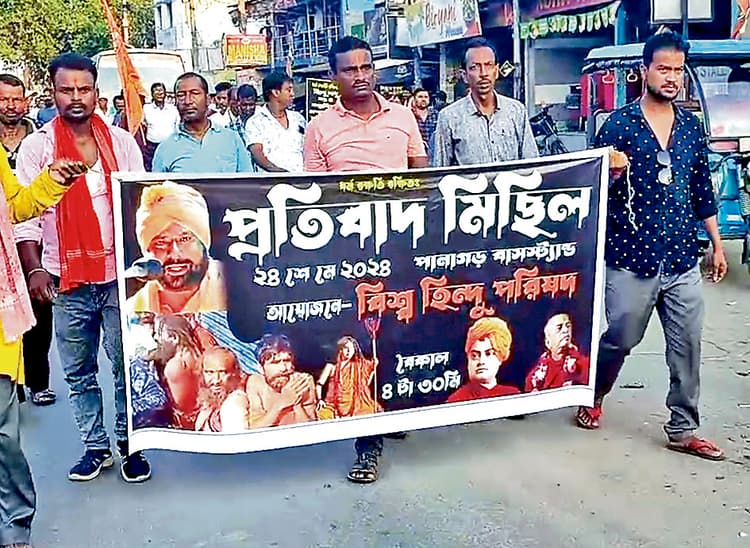 पानागढ़. राज्य की मुख्यमंत्री ममता बनर्जी पर संत समाज और सनातनियों के खिलाफ टिप्पणी करने का आरोप लगाते हुए शुक्रवार को पानागढ़ बाजार में भाजपा द्वारा एक प्रतिवाद जुलूस निकाला गया. इस दौरान विश्व हिंदू परिषद के लोग भी मौजूद थे. यह जुलूस पानागढ़ लक्ष्मी नारायण मंदिर से पानागढ़ बाजार तक गया. भाजपा के मंडल अध्यक्ष समेत पार्टी के अन्य नेता व कार्यकर्ता मौके पर मौजूद थे.