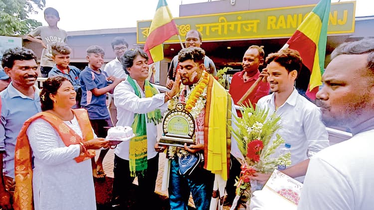 रानीगंज. हाल ही में नेपाल के पोखरा में इंडो- नेपाल यूथ चैंपियनशिप का आयोजन किया गया. इसमें रानीगंज के प्रभाकर किस्कु ने 80 किलो विभाग में बॉक्सिंग में स्वर्ण पदक प्राप्त किया. रविवार प्रातः रानीगंज आने पर रानीगंज रेलवे स्टेशन पर उनका दिशम आदिवासी गांवता की ओर से भव्य स्वागत किया गया. इस अवसर पर संगठन के राज्य पर्यवेक्षक भुवन मांडी, सीमा मांडी, संजय हेम्ब्रम सह संगठन के तमाम सदस्यों की तरफ से उन्हें फूलों का गुलदस्ता देकर और मोमेंटो देकर सम्मानित किया गया. भुवन मांडी ने बताया कि यह बड़े गर्व का विषय है कि इस क्षेत्र के आदिवासी समाज के एक प्रतिभाशाली खिलाड़ी ने अंतरराष्ट्रीय स्तर पर पदक जीता और वह भी स्वर्ण पदक. बीते जून माह में उत्तर प्रदेश में हुए राष्ट्रीय स्तर के प्रतियोगिता में भी उसने गोल्ड मैडल जीता. उन्होंने कहा कि नौ अगस्त को विश्व आदिवासी दिवस के मौके पर ही संगठन की तरफ से प्रभाकर को सम्मानित करने की योजना थी ,लेकिन उस दिन प्रभाकर अन्य किसी स्पर्धा में व्यस्त था. इसलिए उसका रविवार को रानीगंज स्टेशन पर आने पर स्वागत किया गया. उन्होंने प्रशासन से भी अनुरोध किया कि इस युवा खिलाड़ी को सम्मानित किया जाए. प्रभाकर किस्कु ने कहा कि पूरे देश से 45 खिलाड़ी पहुंचे थे. उसने बॉक्सिंग में 80 किलो विभाग में हिस्सा लिया था. उसी स्पर्धा में स्वर्ण पदक हासिल किया. उसने बताया कि इस स्वागत से आगे और बेहतर करने की प्रेरणा मिली है.